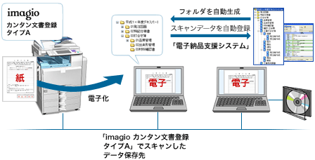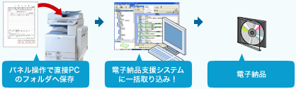 複合機と電子納品支援システムとの連携により、建設業の電子納品を支援するシステムです。