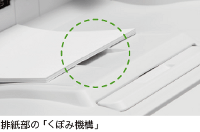 机の下やラック上に設置した場合でも、用紙を取りやすいよう「くぼみ機構」を採用。これにより、A5 などの小さな用紙サイズも、スムーズに取ることができます。