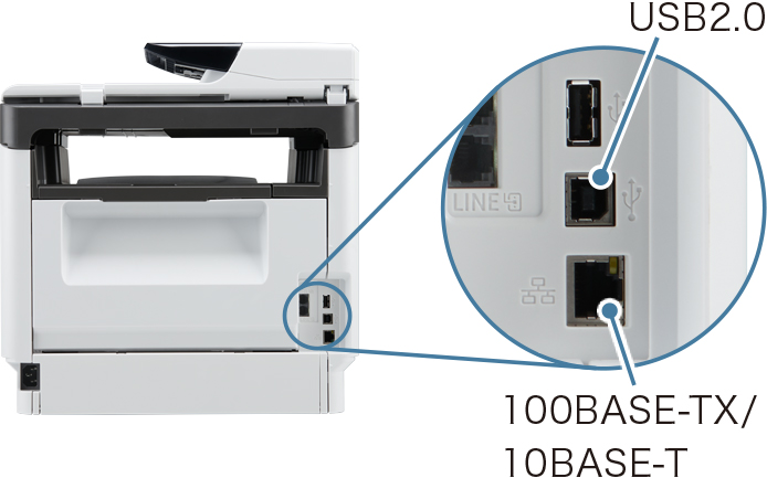 USB2.0およびイーサネット(100BASE-TX/10BASE-T)に標準対応。お客様の用途に合わせて、スタンドアロンでもネットワーク環境下でもお使いいただけます。