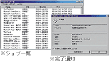 用紙切れなどの印刷時のエラー情報をクライアント画面上に表示することができます。また、自分の印刷したジョブの処理結果を通知したり、履歴を一覧表示できますので、印刷仕上がりの取り忘れを防止できます。