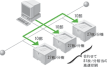 あらかじめ設定した部数を超える指示をすると、自動的にネットワーク上を検索し、複数のプリンターで同時に印刷を行うことができます。