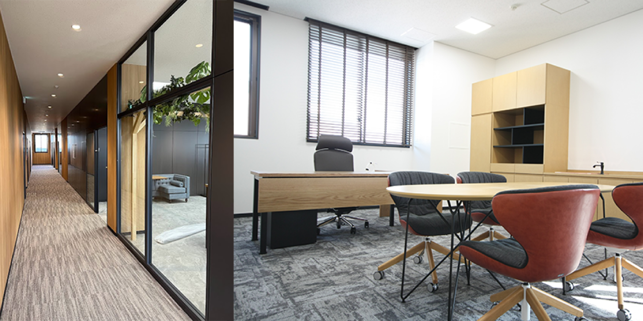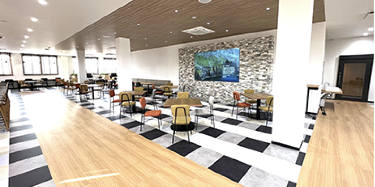 執務エリアには、集中ブースやカウンター席、ビッグテーブルなど、さまざまなコーナーを配置し自由に選べるワークスタイルを導入。お客様との打ち合わせや地域のゲストを招いたイベント会場としても活用が見込まれます。洗練されたカフェのようなオフィスで社員がイキイキと働く魅力的な企業として、お客様企業や就職活動中の学生にとどまらず、地域の皆様からも注目を集めています。