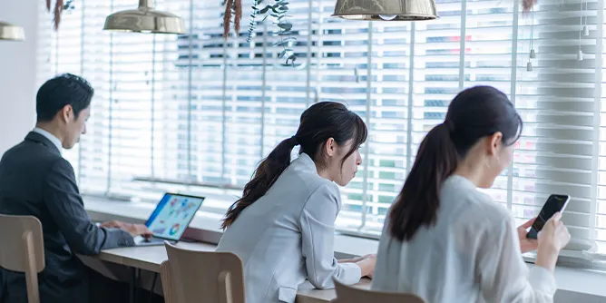 フレキシブルワークスペースは、シェアオフィスやコワーキングスペースのように他社のオフィススペースを利用することもできますが、柔軟性や業務を安心して情報漏洩なく進めるためには、自社で創設したオフィスで進めるのが良いでしょう。