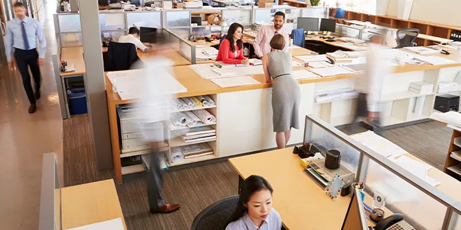 従業員が作業する際に十分に余裕のあるスペースがあること、またデスクや椅子、キャビネット、パーティションなどが使いやすいかどうかは、業務効率を上げるためのポイントです。