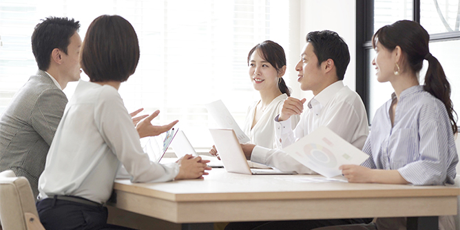 従業員同士が気軽にミーティングや雑談を行うことができる空間は、フラットで気兼ねのないコミュニケーションを生み出します。自然とコミュニケーションの活性化につながります。