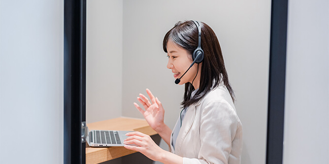 個室ブースではWeb会議を行うことができます。閉鎖された空間で集中でき、遮音性もあれば、周囲に音が漏れることなく、機密性を保って実施することができます。