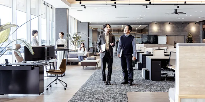 “新しい働き方”をお客様と一緒に考えながら、オフィス移転やリニューアルを、計画から理想の働き方が実行されるまで、ワンストップでご支援いたします。