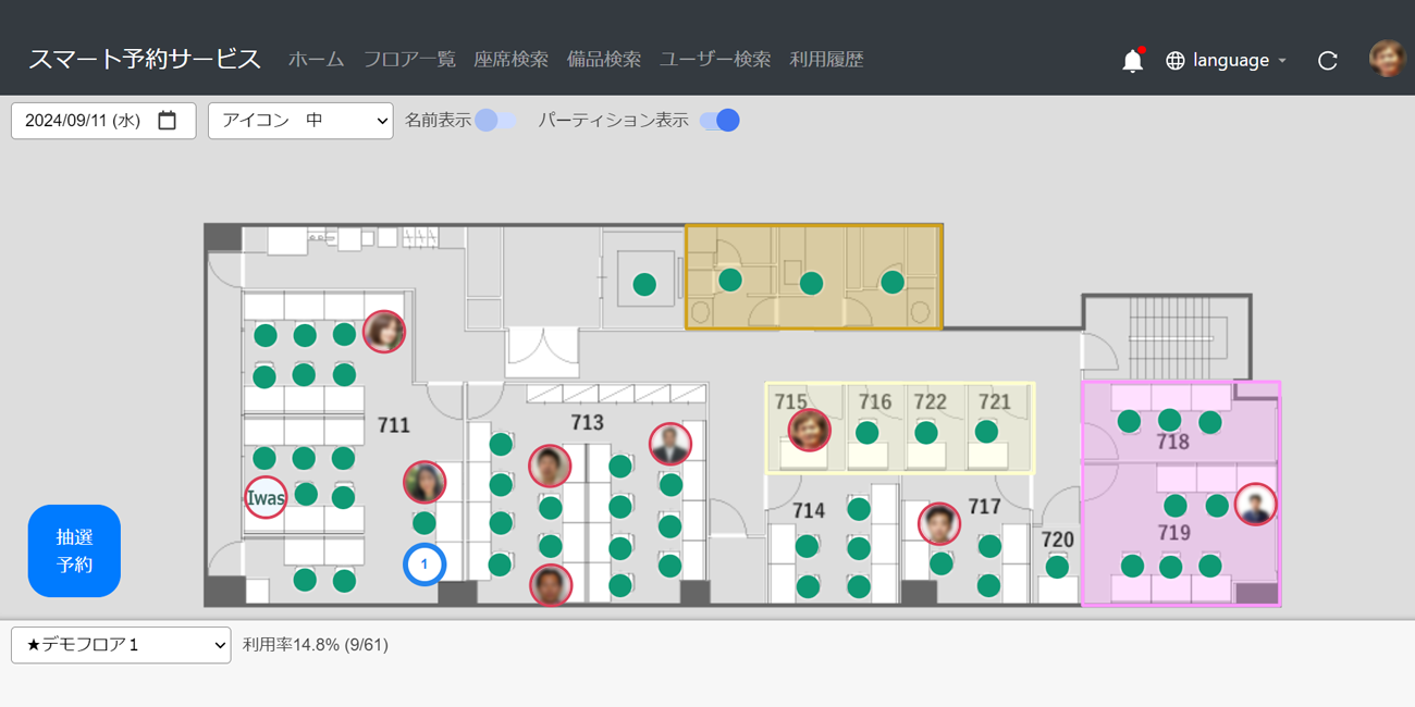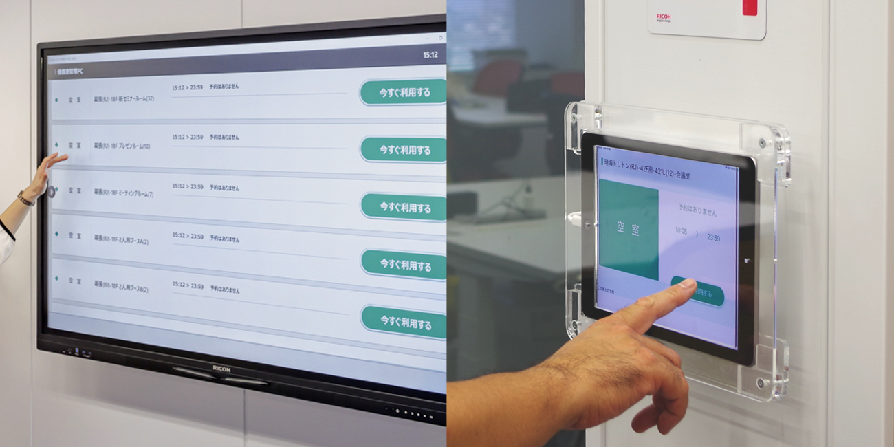 最新の利用状況を反映した予約システムで、空予約を防ぎ、急な会議場所探しでも慌てずスムーズに打合せを開始