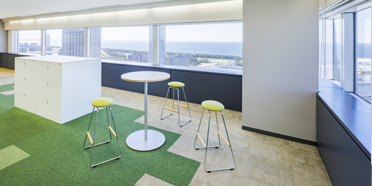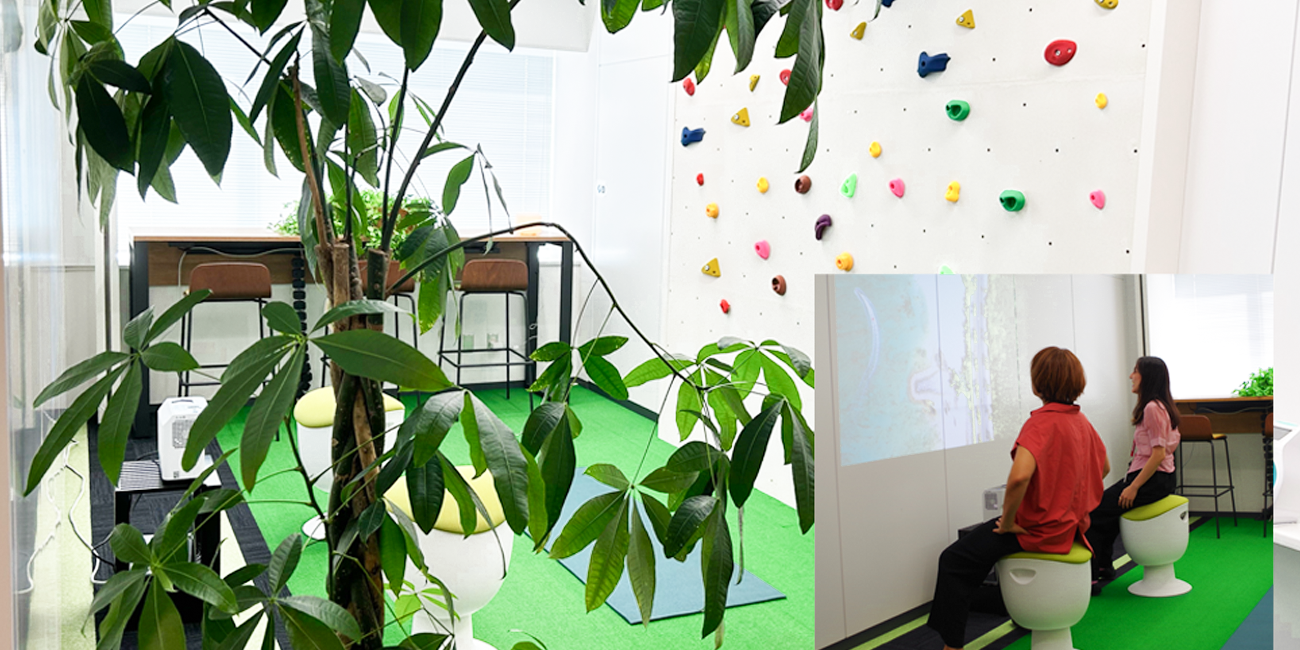 リフレッシュしたい社員が自然と集まれる空間で、心地よくコミュニケーションがとれる