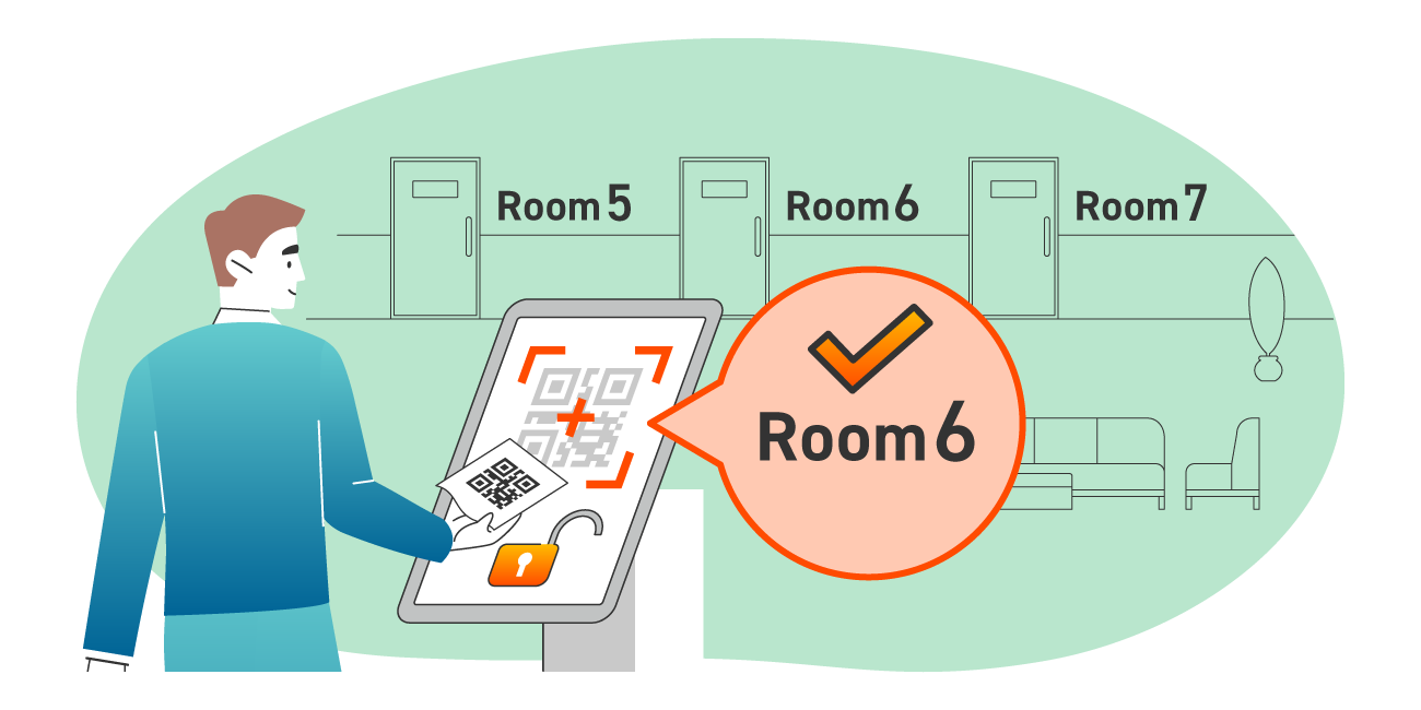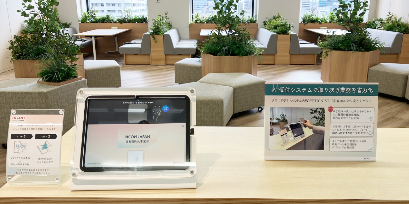 事業所移転を機に、受付の無人化と会議室予約が連動するシステムを採用。事前に送付されたQRコードをかざすだけで受付を完了でき、来訪者の滞留もなくなりました。