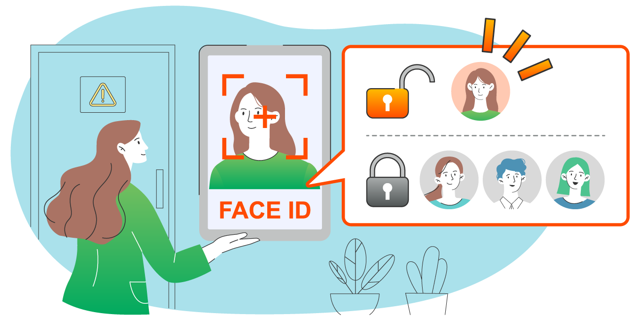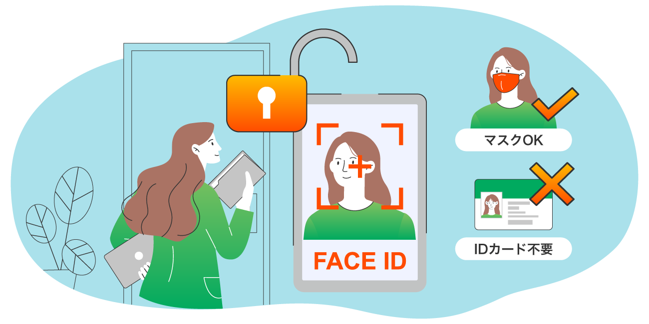 カード認証・顔認証・生体認証・スマートロックなどで本人確認と入退出を管理。出入時刻をはじめ各種データの自動保存も可能。