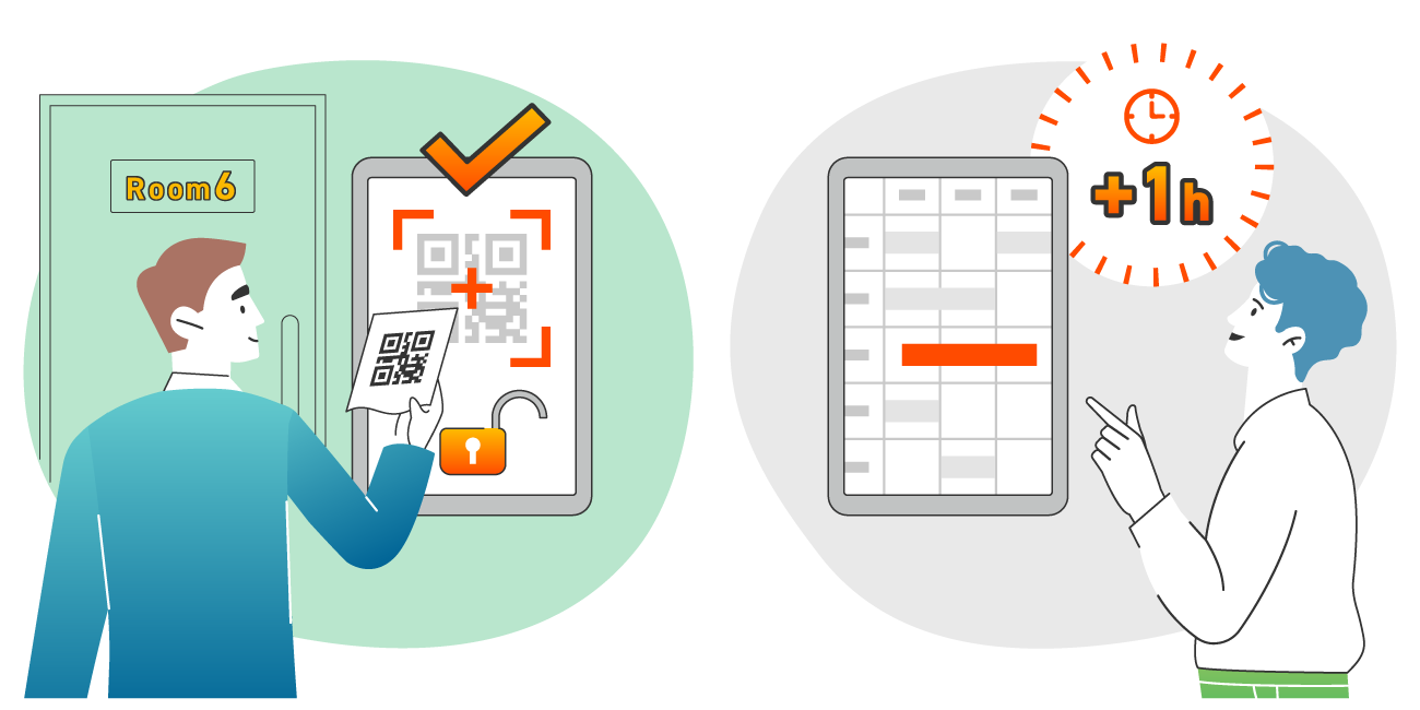 会議室の事前予約から退室までの会議室利用の流れをスムーズに。利用状況の見える化と分析による改善で会議室の運用を効率化。
