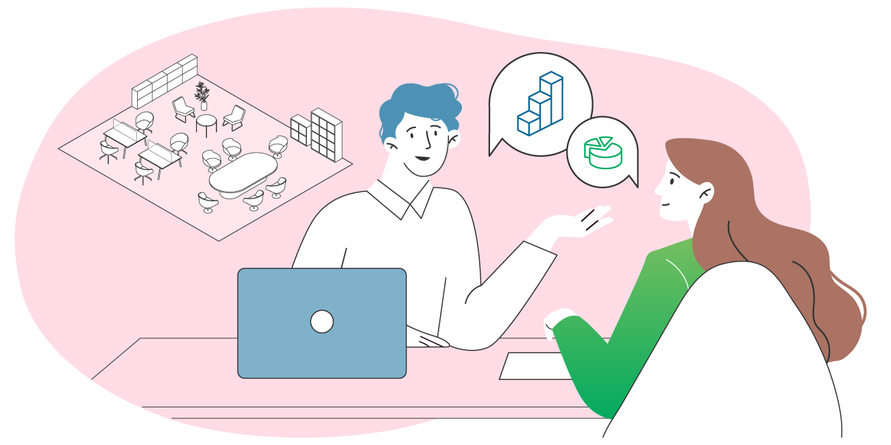 働き方に合った柔軟な座席予約が可能に。在席場所の把握で社内での円滑な対話も可能。利用状況の見える化と分析で柔軟な座席運用へ。