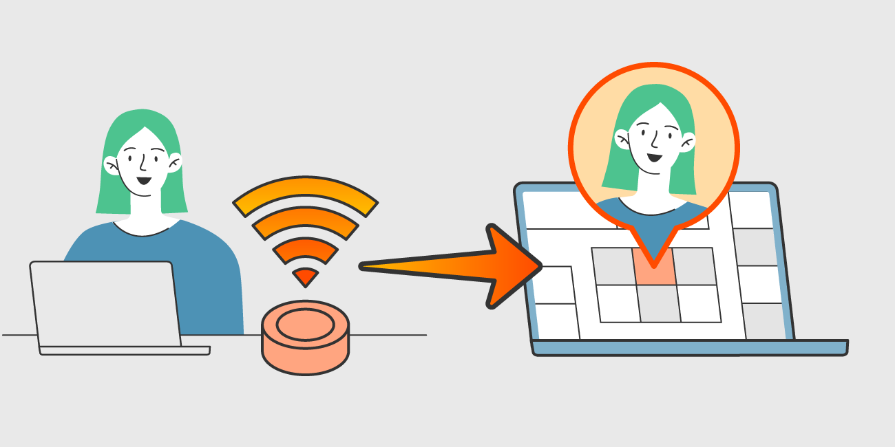 無線情報を利用してオフィス内の人やモノの居場所をリアルタイムで共有。メンバー同士のコミュニケーションの活性化も。