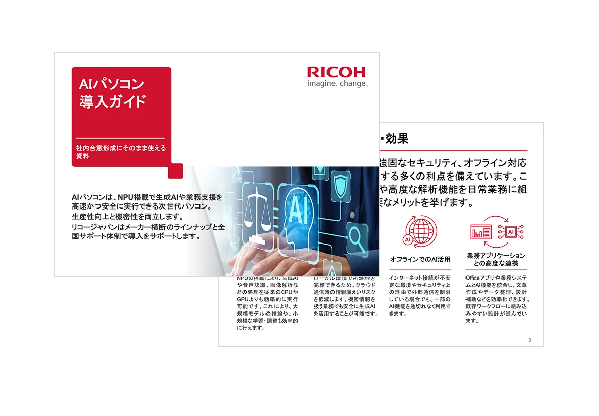 AIパソコン(AI PC)の導入や最適な機器選定でお悩みの方は、ぜひリコージャパンへご相談ください。