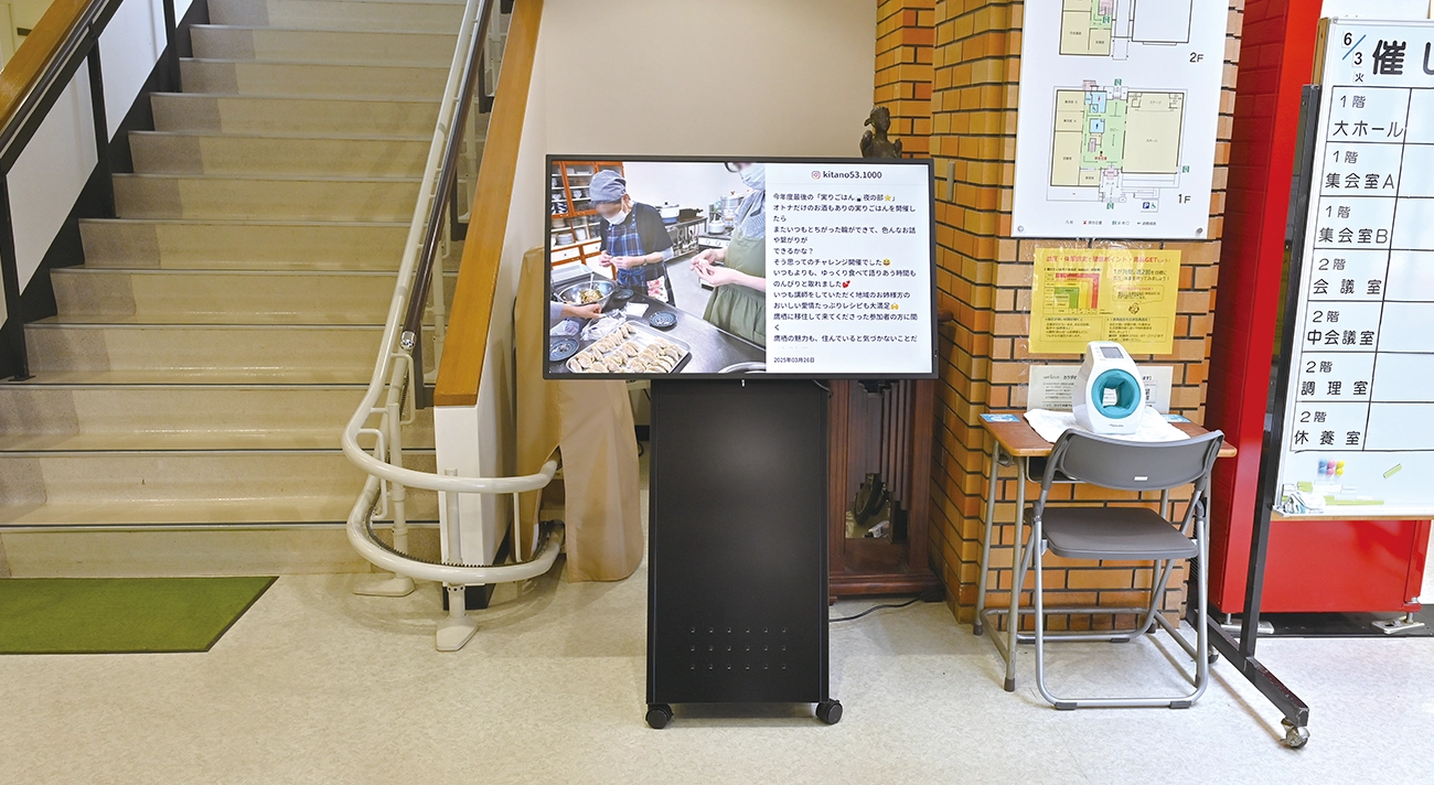 住民センターのリコーデジタルサイネージから流れるInstagramに、子供も子育て世代も高齢者も注目。コンテンツをきっかけに会話が弾み、世代を超えた交流が活発に。