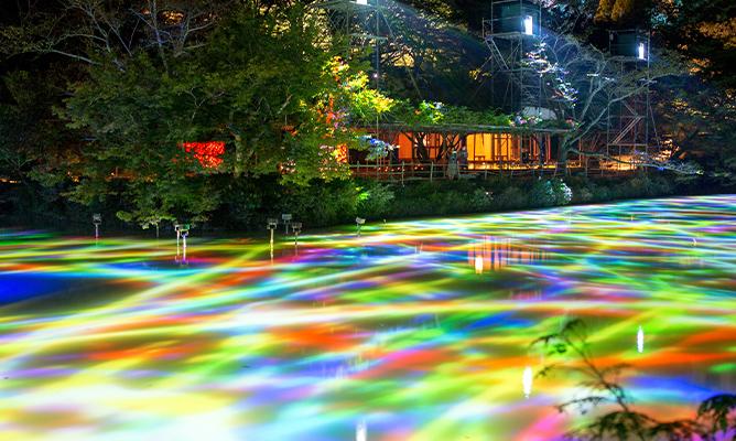 店舗や施設における空間演出のためのコンテンツです。例えば、プロジェクションやLED照明などが併用され、建築物や造作物の演出など、屋内・屋外問わずインパクトのある空間演出を行うためのコンテンツとなります。