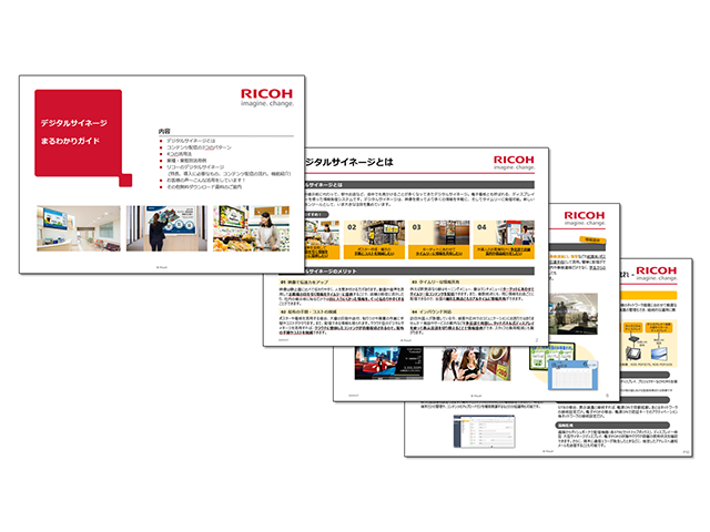 デジタルサイネージの特長や活用目的、実際に導入されたお客様の声などをわかりやすくまとめた“デジタルサイネージ まるわかりガイド”をご用意いたしました。