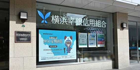 横浜幸銀信用組合は、ビジネス拡大に向けたブランディング強化の一環としてリコーデジタルサイネージを導入し、店外へ向け大画面で魅力を効果的に発信しています。現在11店舗に設置され、西日本エリアの7台は広告代理店へ運用を委託し、コンテンツ作成から遠隔配信まで一括して任せることで情報更新を手軽にしています。商品の案内やキャンペーン、店舗独自の情報など多彩なコンテンツを柔軟に提供可能となり、PR・ブランディングが強化され、認知度が高まり、新規顧客数が増加しました。