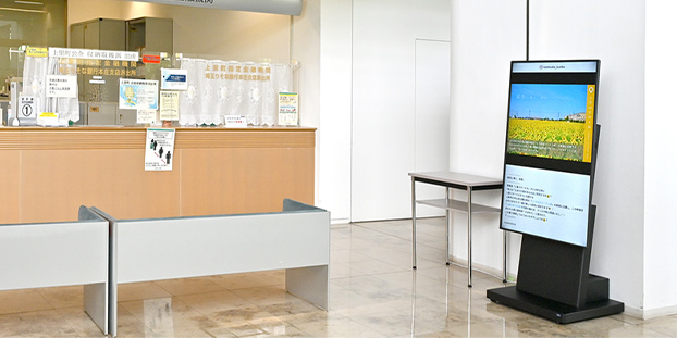 例えば病院では施設案内やセルフメディケーション情報、銀行では取扱い商品や地域情報、大学では講義情報、自治体では地域イベントの情報や住民向けの情報などを発信する情報提供ツールとしてデジタルサイネージを活用いただけます。また、待合室でニュースや天気予報などのコンテンツを配信することで、退屈な待ち時間を快適にすることもできます。