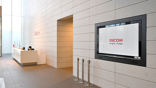 リコーデジタルサイネージを全社展開し、本社と事業所の双方からタイムリーに情報配信。 距離を超えたコミュニケーションが活性化。