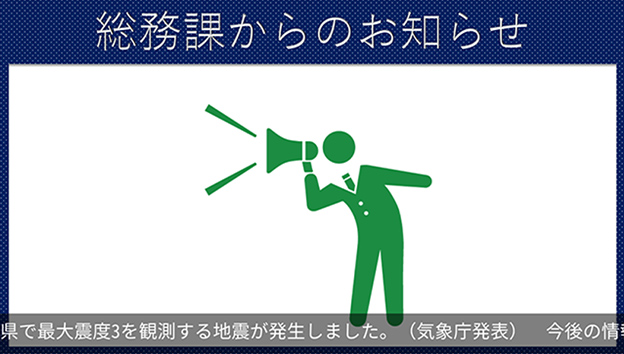 デジタルサイネージは、社員様が確実に目にする場所に設置することで、BCP対策においても有効なツールです。