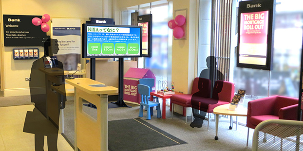 地域情報など、お客様のニーズにあった情報を配信することで、CSの向上に寄与できます。また銀行免許・個人情報利用に関するお知らせなどにも活用(必携ポスター)ができます。