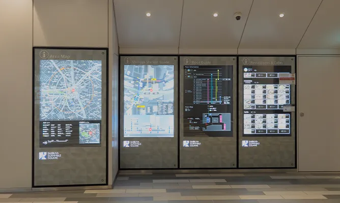 リコーのデジタルサイネージは、駅、バスターミナル、空港、フェリー乗り場などの交通結節点において、運行情報のリアルタイム配信や多言語案内、緊急時の誘導をサポート。利用者の不安を解消し、顧客満足度の高い移動空間を創出します。