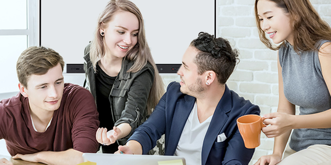電子黒板の大きなディスプレイで画像や動画など、様々なコンテンツを投影することで、