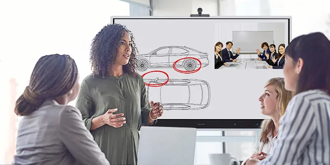 リモートからの参加者とクラウド上のホワイトボードを共有すれば、