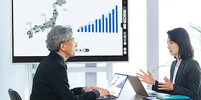 資料を映す、アイディアを書くなど、ブレインストーミングをペーパーレスで実現できます。