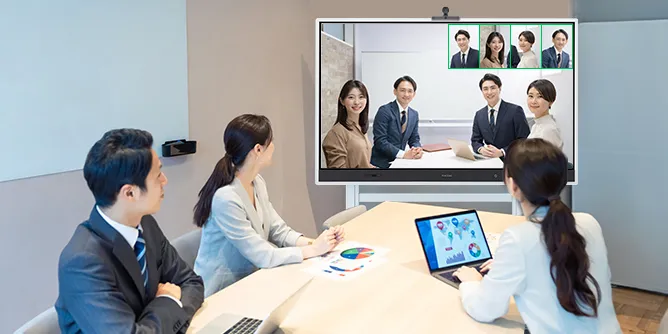 AIカメラを使えば、リモート参加者にも会議室の雰囲気が伝わります。