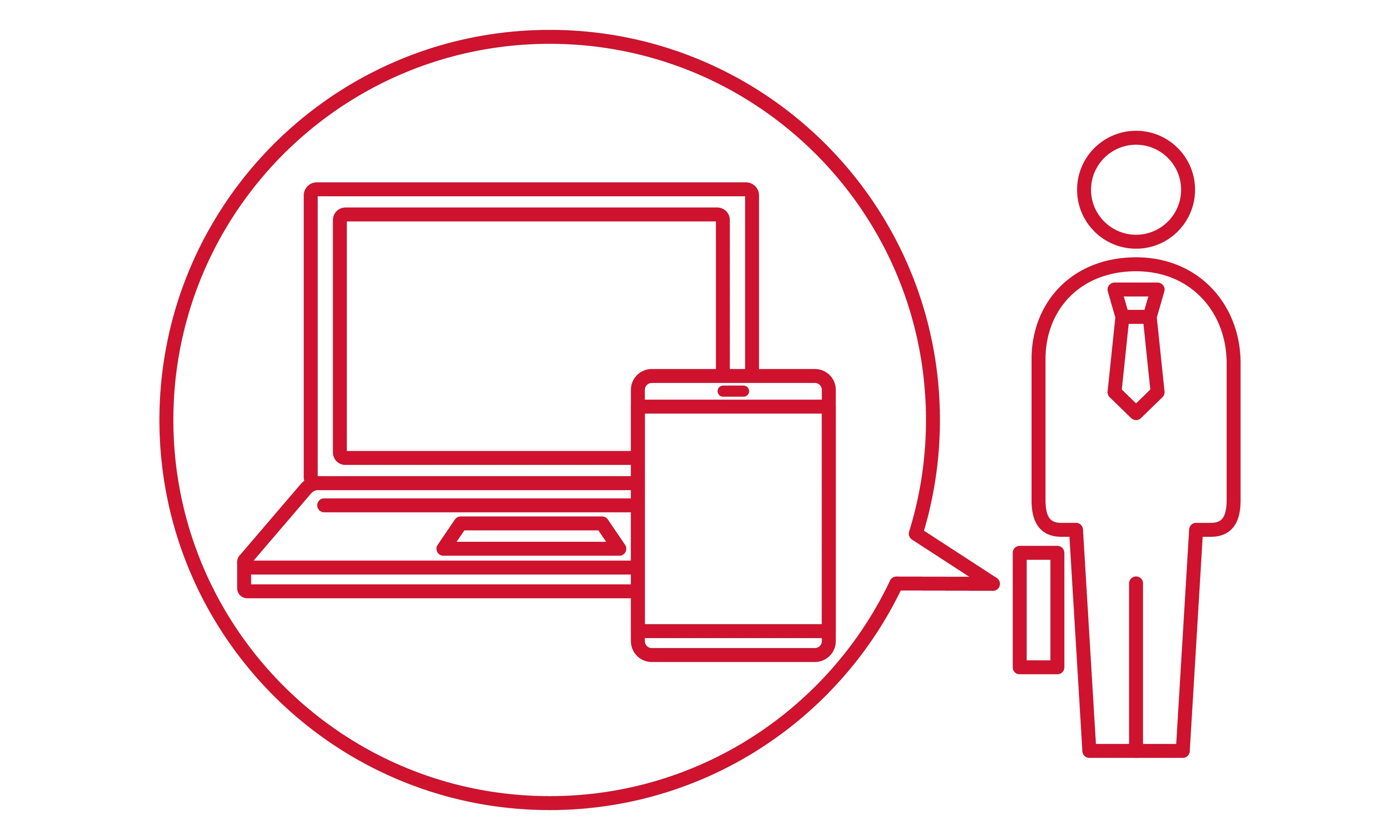 モバイルPCを活用し、外出先でのプレゼンや見積作成、クラウドCRMへの即時入力を実現。移動時間の有効活用と顧客対応スピードの向上に寄与します。