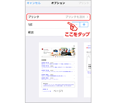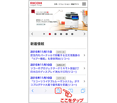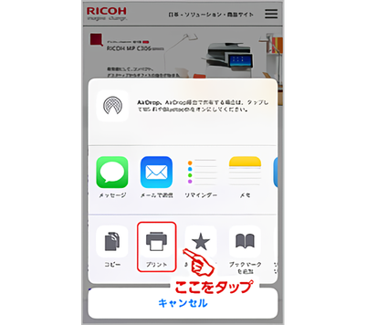 印刷の手順:Webページの場合。(iPhoneの画面のイメージです。)