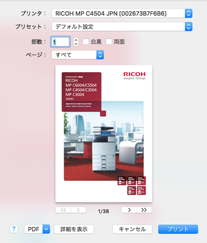 印刷設定の変更は、[詳細を表示]をクリックします。