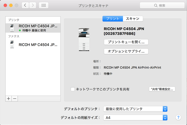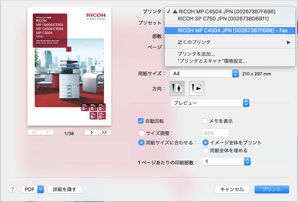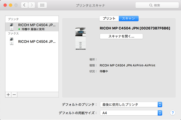 MacOS Xより、印刷、スキャン、ファクス送信を可能にするAirPrint(Print/Scan/FaxOutService)がご利用いただけます。