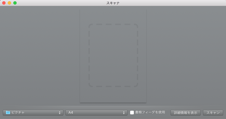 [スキャン]をクリックします。自動両面原稿送り装置を使用する場合は、[書類フィーダを使用]を選択します。