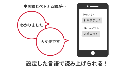 設定した言語で読み上げられる!