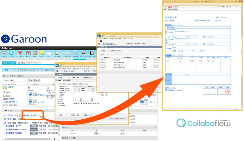 コラボフローと⼤企業向けグループウェア「ガルーン」がシームレス連携しワークフローを強化します。