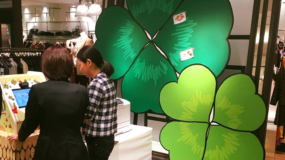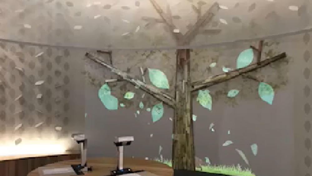 参加者の願いや夢が書かれた写真メッセージが葉となり「成長する木」として投影され、メッセージが集まると木が成長。