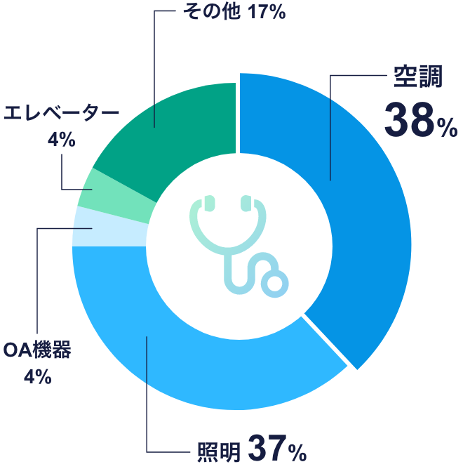 空調38%、照明37%、その他17%、OA機器4%、エレベーター4%