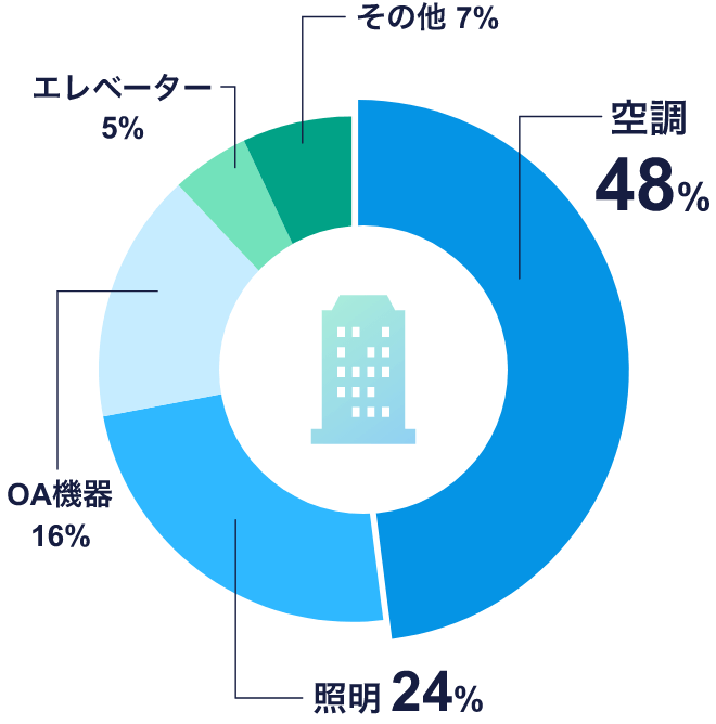 空調48%、照明24%、OA機器16%、その他7%、エレベーター5%
