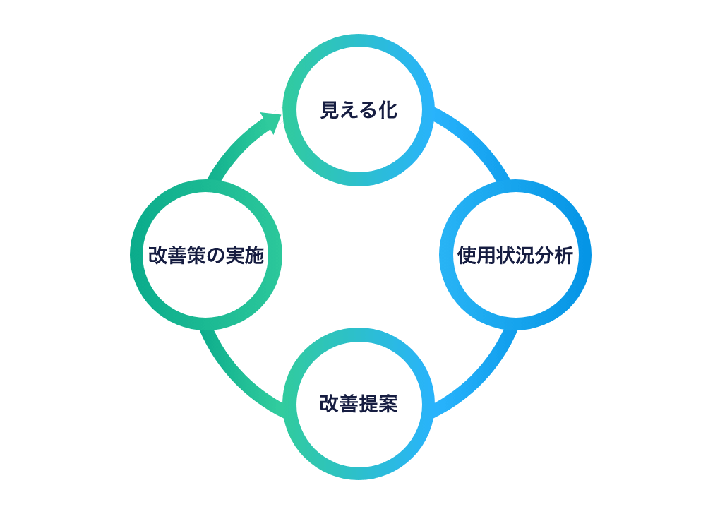 エネルギー・マネジメントとは、「電力の見える化」「使用状況の分析」「改善提案」「改善策の実施」というPDCAを回し、