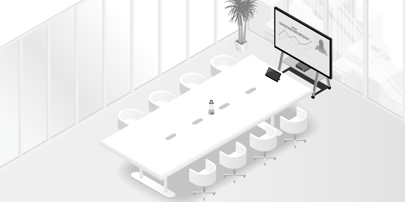 Rooms専用デバイスで、会議室参加者にもリモート参加者にも高品質でクリアな映像や音声を届けることができます。会議室内で起きていたハウリングに悩まされることもなくなります。