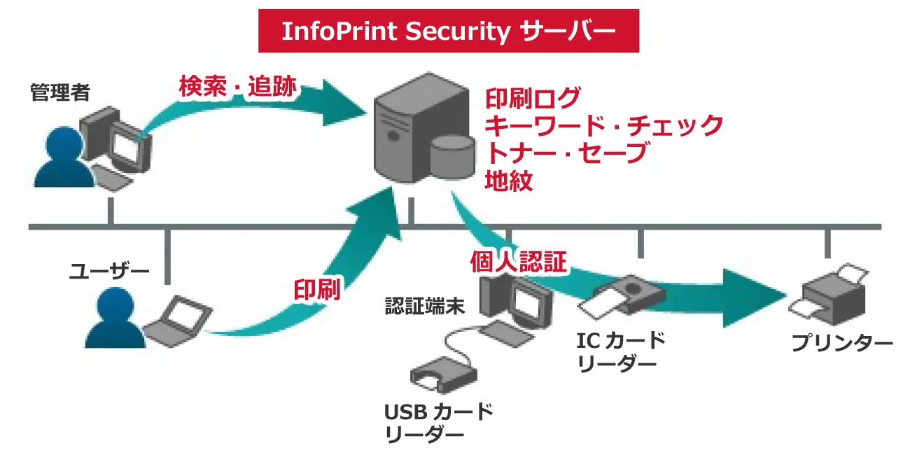 InfoPrint Security V2.1Windows上で稼動するソフトウェアで、次のような特長があります。