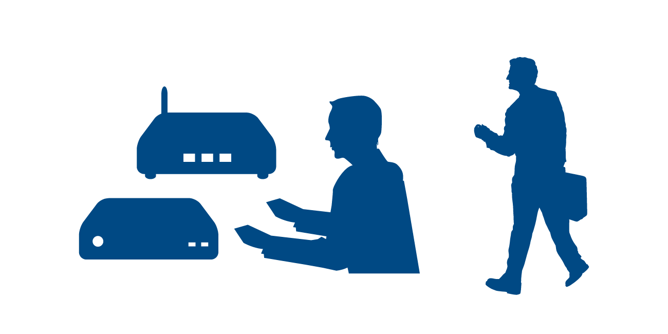 社内用とゲスト用の2種類のSSIDを設定し、来客などへのインターネットアクセスのみを許可してサービス提供ができます。