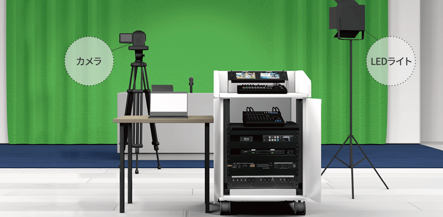 インターネット環境、PCはお客様にてご用意ください。グリーンバックは別途お問い合わせください。