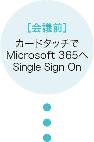 ICカードをタッチするだけで、RICOH Collaboration Boardの利用者認証に合わせて、Microsoft 365のアカウントにSingle Sign Onされます。ICカード認証によりセキュアに利用できるだけでなく、認証者のアカウントから会議に必要な情報が素早くセットされるので、特別な準備をすることなく会議をスムーズに開始できます。