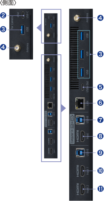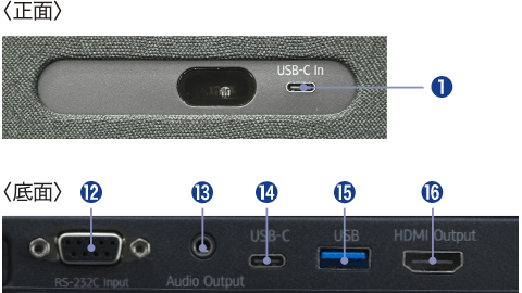 ❾USB Type-B(❿または⓫いずれかと組み合わせて利用可能)