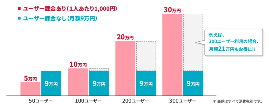 | ユーザー数課金 | なし(同時接続数に上限があります) |
